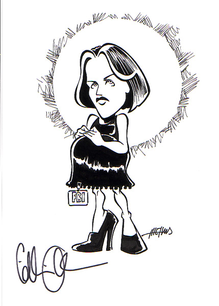 This drawing of a very pregnant Scully was donated by Maurizio Di Bona (aka: The Hand), inventor of the rokkartoon. He also creates custom made cartoons. For information on how to be a protagonist in your very own comic strip, click here.