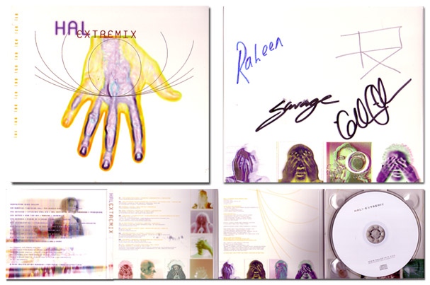 This item is a CD entitled "EXTREMIX - A Remix Compilation." It was released by HAL last June and includes a previously unreleased remix of the single "Extremis," which Gillian recorded with them in 1997. For more information about this CD, including a track listing and song samples, visit HalBoutique.com. The CD is signed by Gillian Anderson and the members of HAL: Raheen (Paul Gallagher, rest in peace), Savage (Duncan Lomax), and Px (Pascal Derycke) and comes