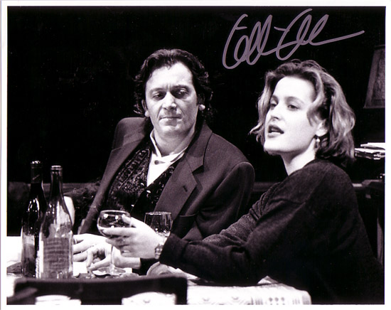 This item is a promotional still from Gillian's second professional play The Philanthropist by Christopher Hampton which was performed at the Long Wharf Theater in New Haven, CT in 1992. In this photo, Gillian is playing the character of Celia to Ronald Guttman's Braham.