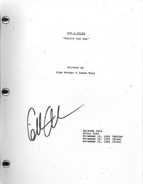 Autographed "Beyond the Sea" Script 1X12 TXF episode. Original Air Date: January 7, 1994. Written by Glen Morgan and James Wong. Directed by David Nutter. Proceeds from this item will benefit the NfA and Buskaid. |