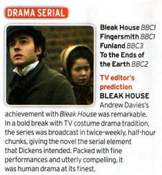 The BBC's Charles Dickens adaptation Bleak House, which had been nominated in four categories, also claimed the best actress award thanks to Anna Maxwell Martin's performance.