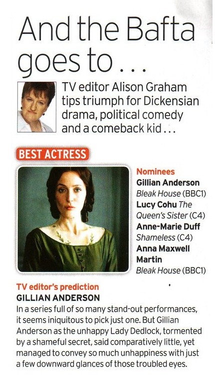 Gillian attended today's BAFTA Awards in London, where she was nominated for Best Actress for her role in Bleak House.
